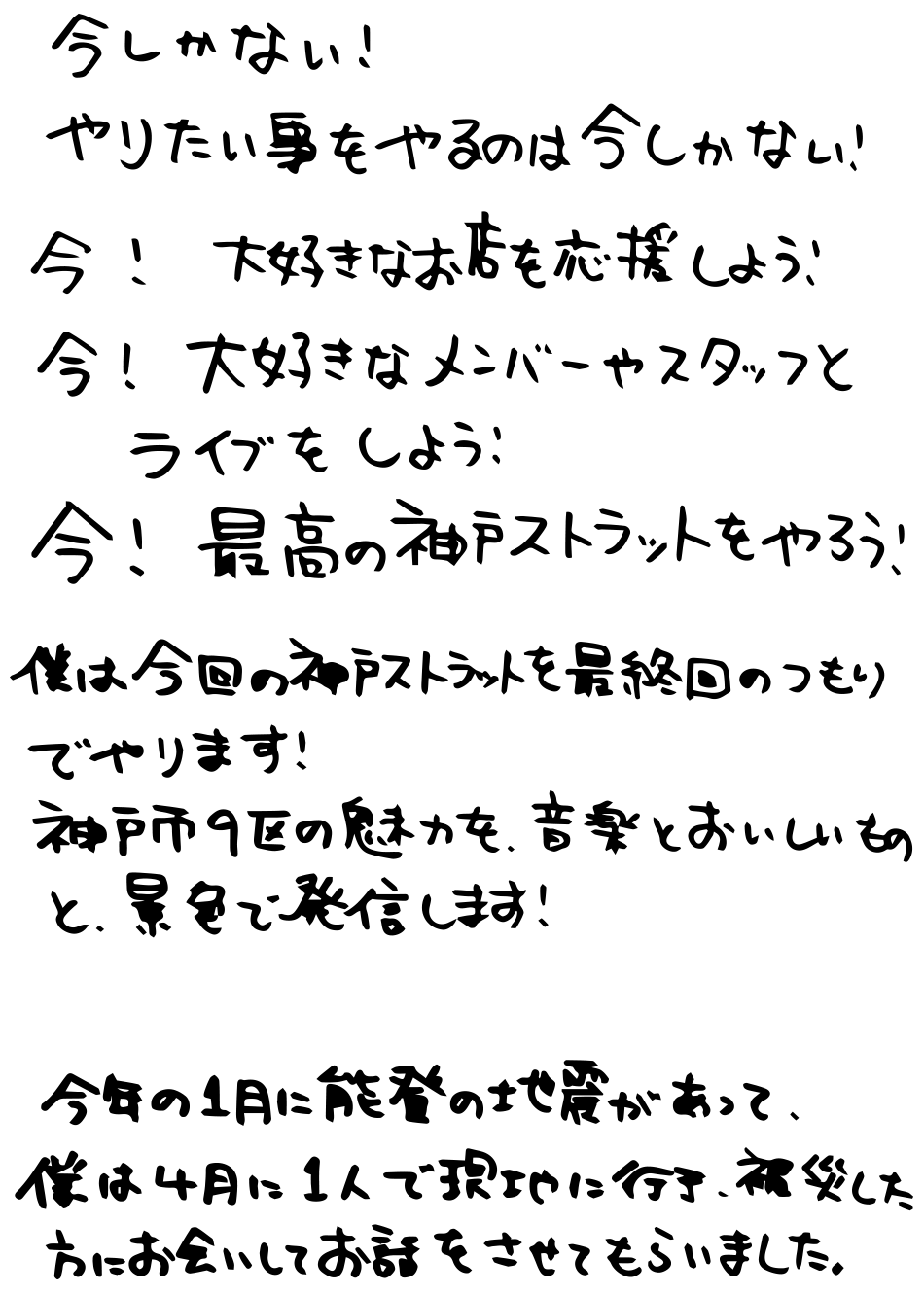 - 神戸ストラットは開催時間を20:00までに大幅に変更して、開催いたします